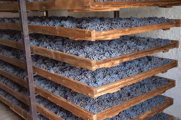 Following the drying process that is completed during the end of January or beginning of February, the grapes are crushed