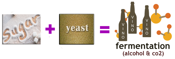 Sugar + Yeast = Alcohol and co2